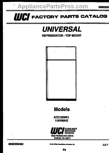 Parts for Frigidaire ATC130YK1: 01 - Cover Parts