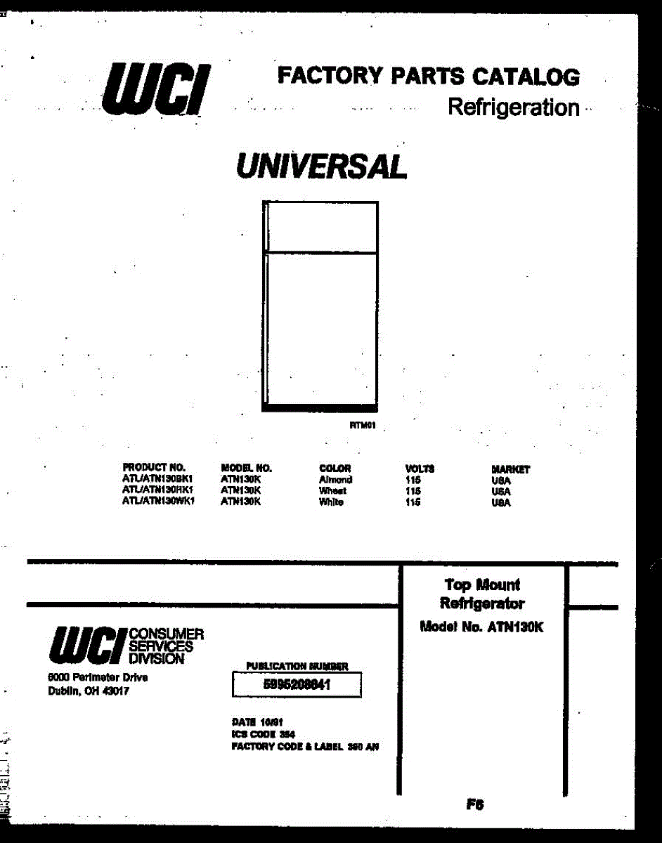 Parts for Frigidaire ATL130WK1-00: 01 - Cover Parts