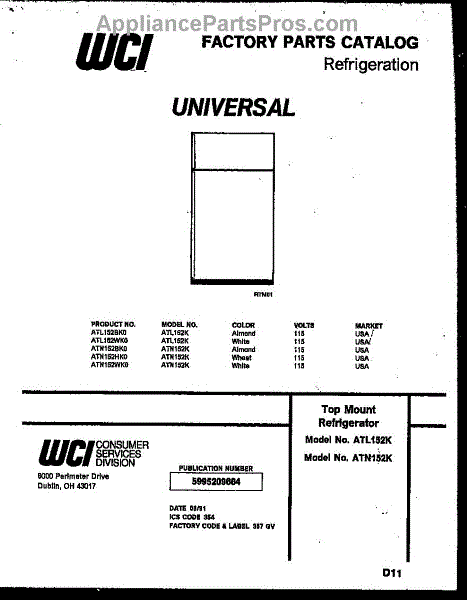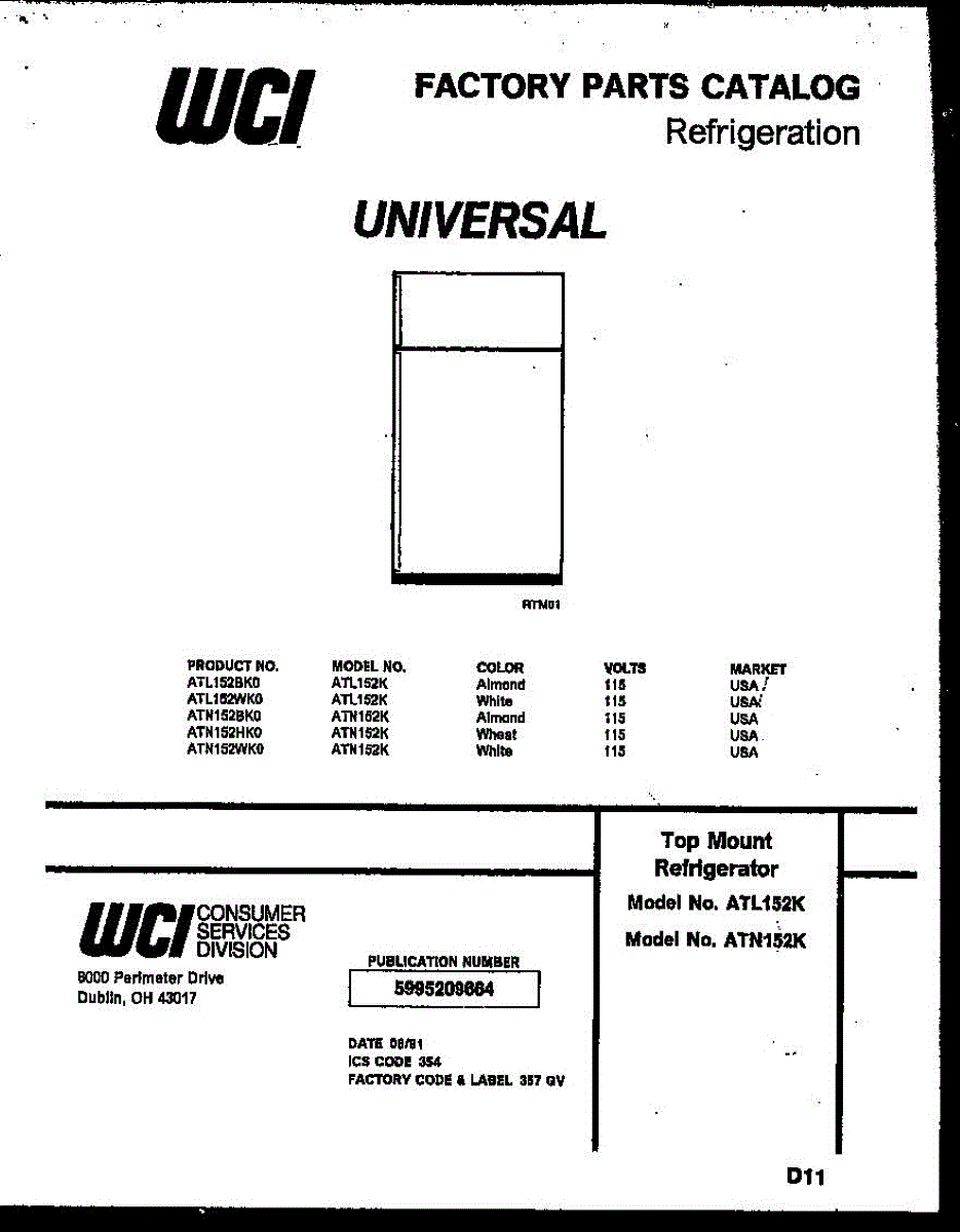 Parts for Frigidaire ATN152HK0: 01 - Cover Parts