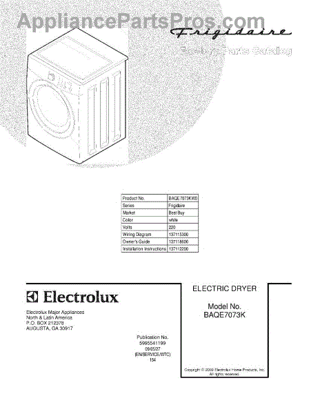 Parts for Frigidaire BAQE7073KW0: 01 - Cover Parts