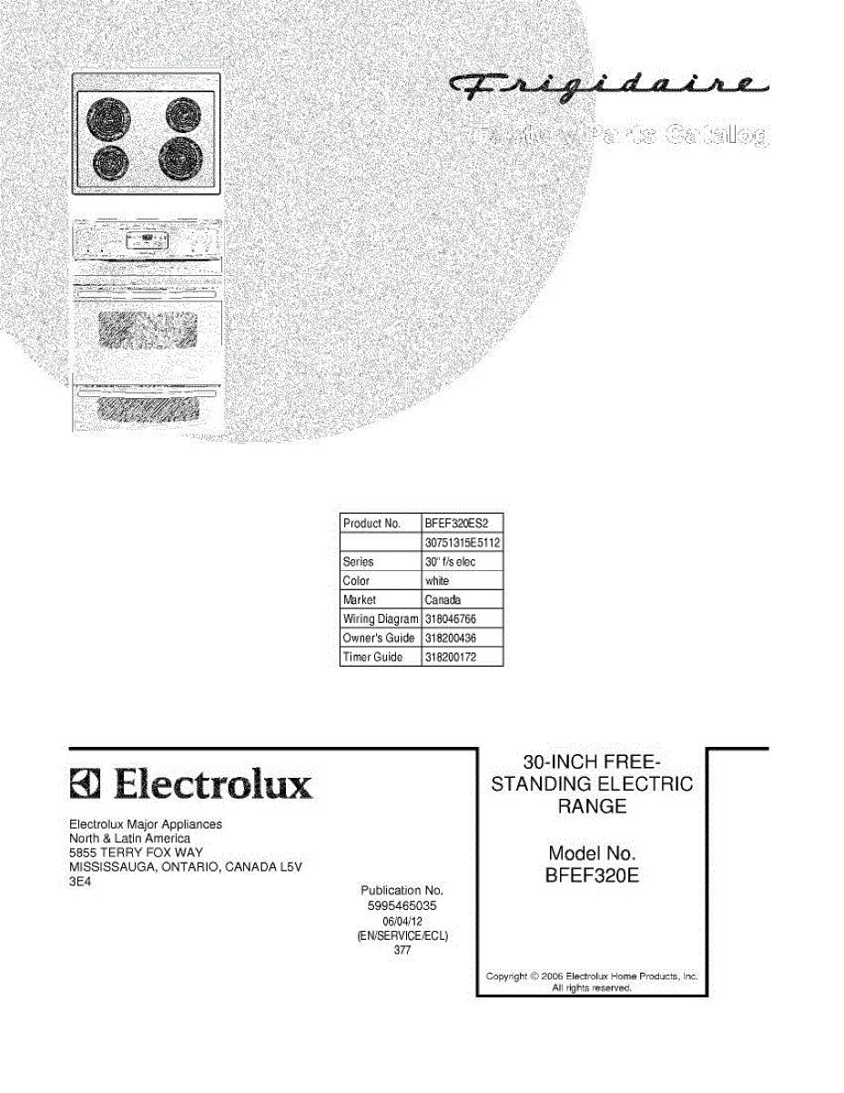 Parts for Frigidaire BFEF320ES2: 01 - Cover Parts