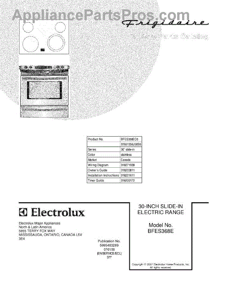 Parts for Frigidaire BFES368EC6: 01 - Cover Parts