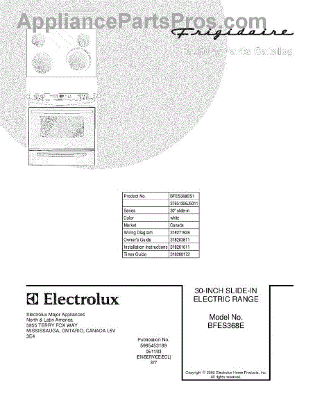 Parts for Frigidaire BFES368ES1: 01 - Cover Parts