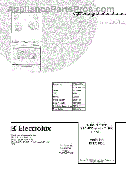 Parts for Frigidaire BFES368ES6: 01 - Cover Parts