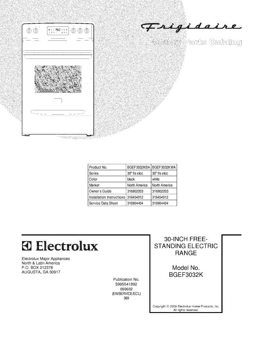 Parts for Frigidaire BGEF3032KWA: 01 - Cover Parts