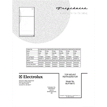Parts for Frigidaire BLRT86TEW5: 01 - Cover Parts