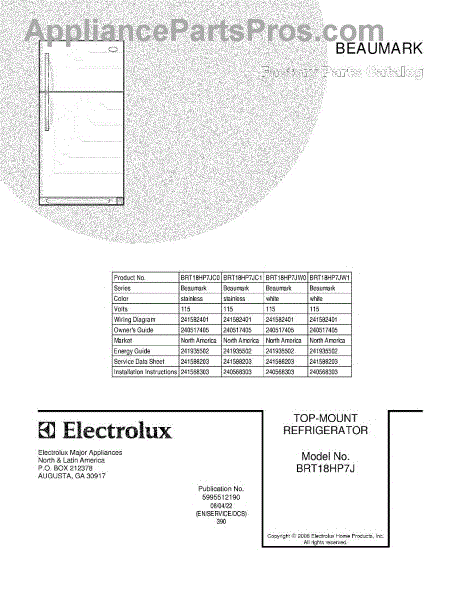 Parts for Frigidaire BRT18HP7JW0: 01 - Cover Parts