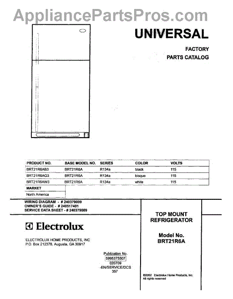 Parts for Frigidaire BRT21R6AB3: 01 - Cover Parts