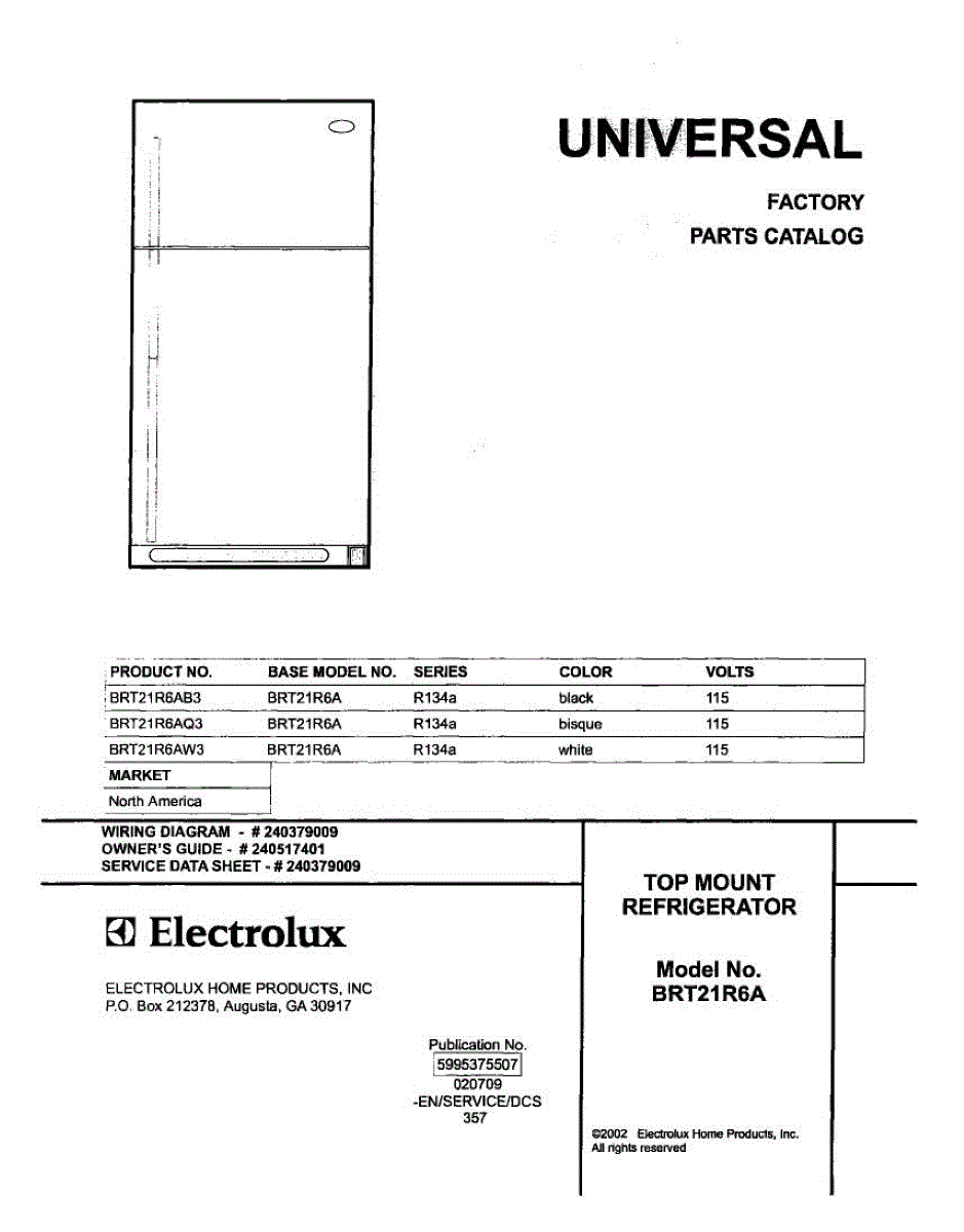 Parts for Frigidaire BRT21R6AW3: 01 - Cover Parts