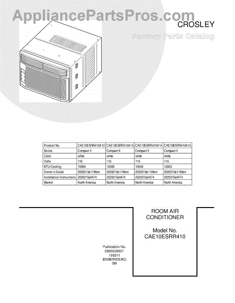 Parts for Frigidaire CAE10ESRR410A14: 01 - Cover Parts
