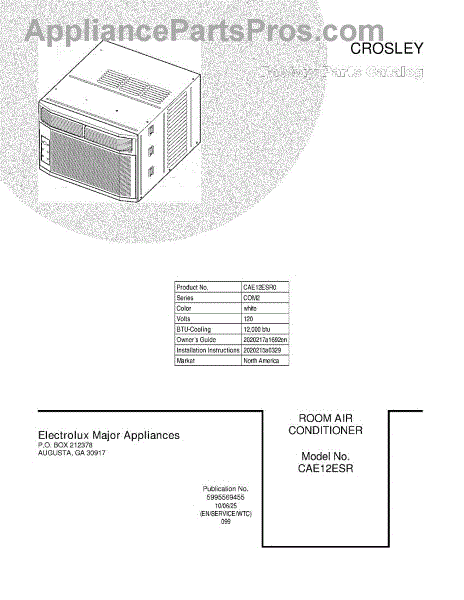 Parts for Frigidaire CAE12ESR0: 01 - Cover Parts