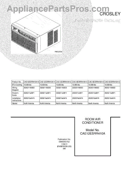 Parts for Frigidaire CAE12ESRR410A14: 01 - Cover Parts