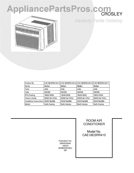 Parts for Frigidaire CAE18ESRR410A16: 01 - Cover Parts