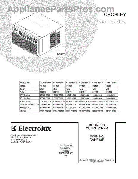 Parts for Frigidaire CAHE18ER15: 01 - Cover Parts