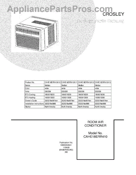 Parts for Frigidaire CAHE18ERR410A10: 01 - Cover Parts