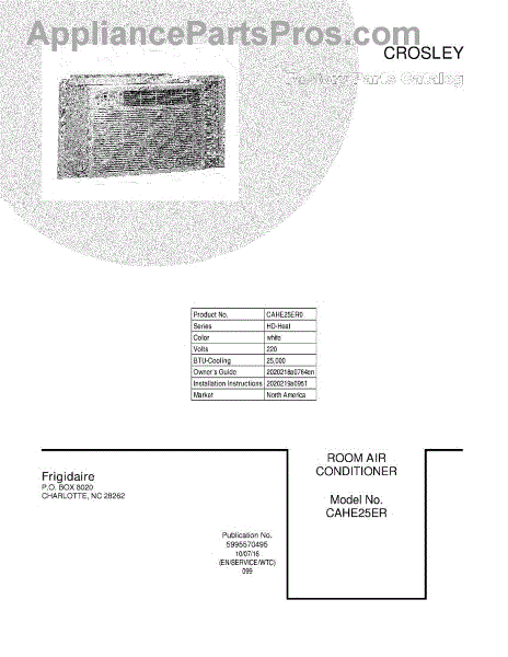Parts for Frigidaire CAHE25ER0: 01 - Cover Parts