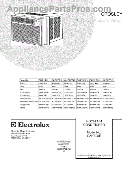 Parts for Frigidaire CAHE25ER11: 01 - Cover Parts