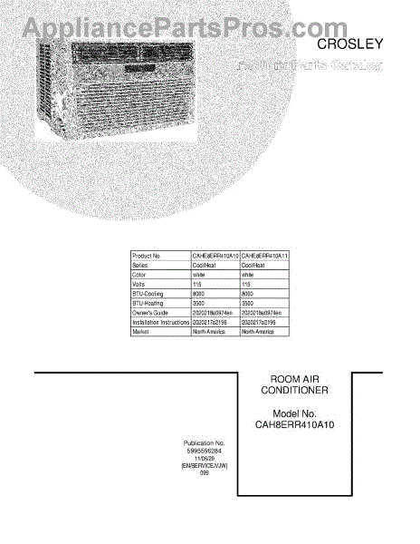 Parts for Frigidaire CAHE8ERR410A10: 01 - Cover Parts