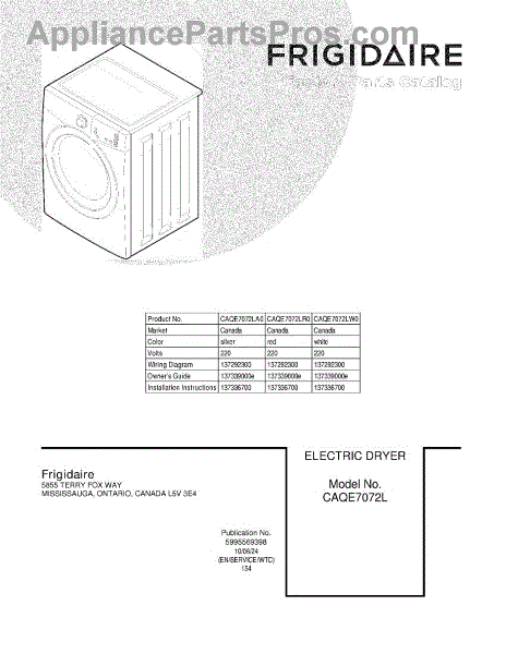 Frigidaire Dryer Parts