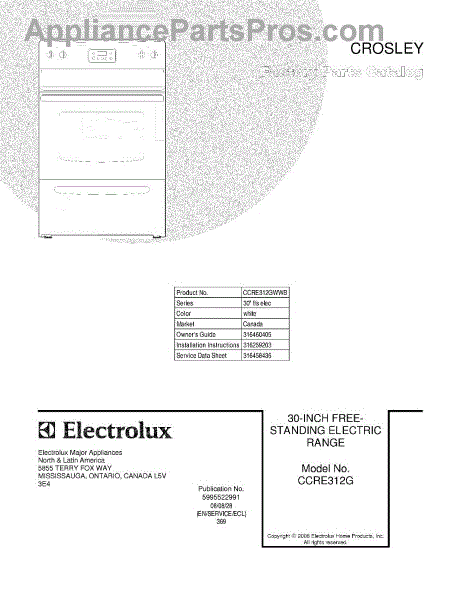 Parts for Frigidaire CCRE312GWWB: 01 - Cover Parts