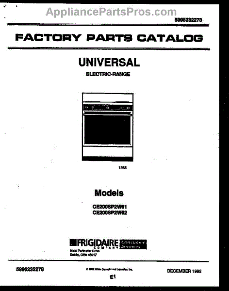 Frigidaire Range Parts