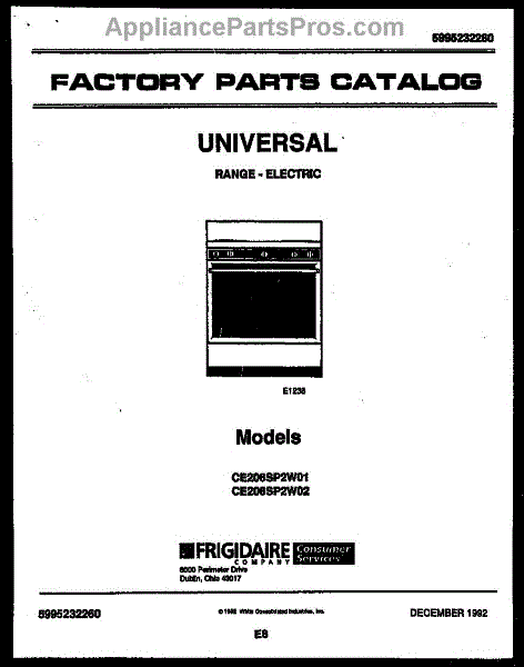 Parts for Frigidaire CE206SP2W1: 01 - Cover Parts