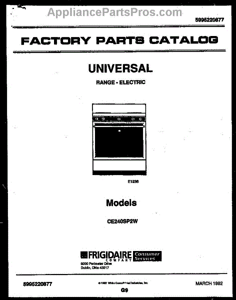 Parts for Frigidaire CE240SP2W0: 01 - Cover Parts