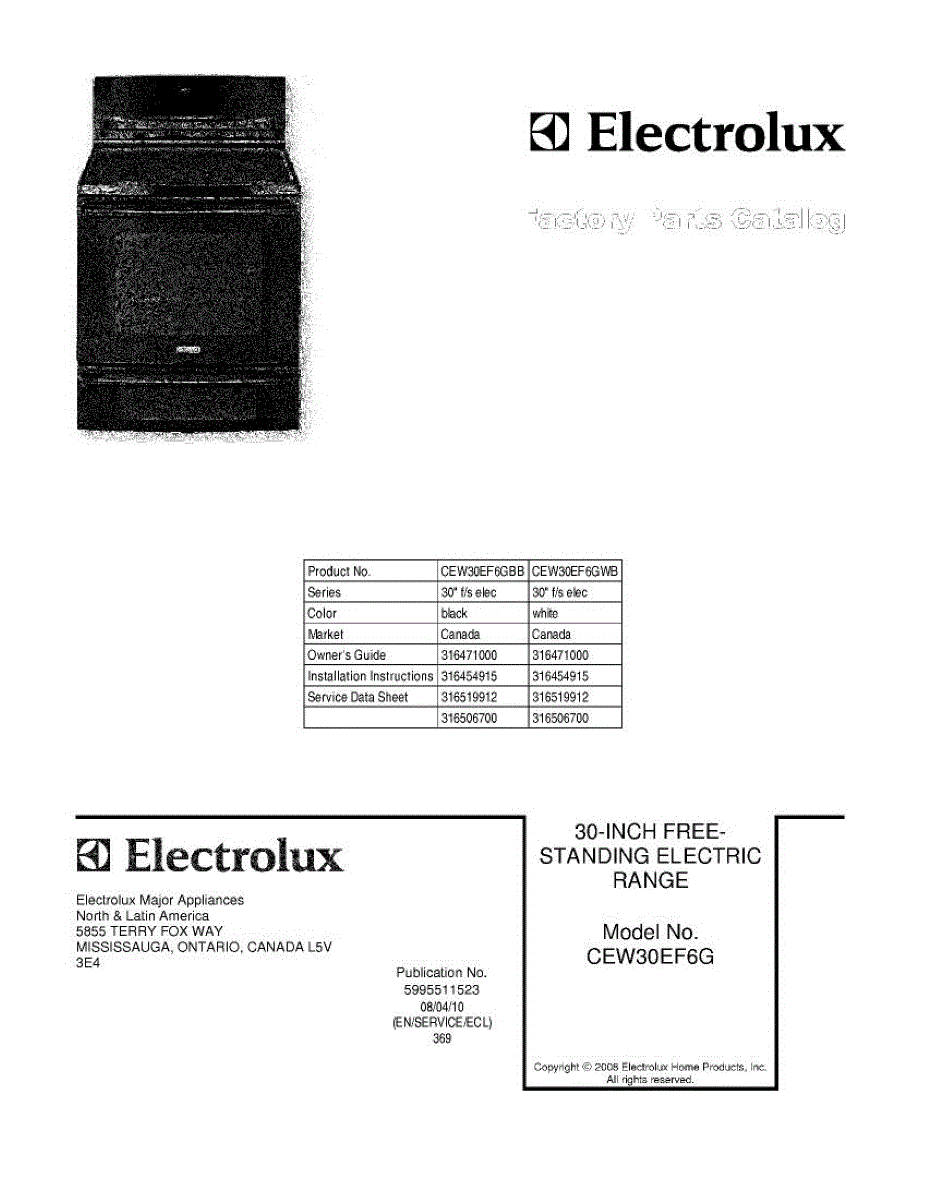 Parts for Frigidaire CEW30EF6GBB: 01 - Cover Parts