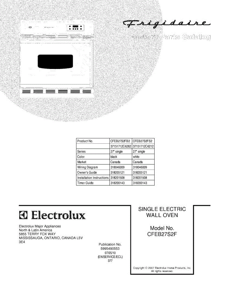 Parts for Frigidaire CFEB27S2FB2: 01 - Cover Parts