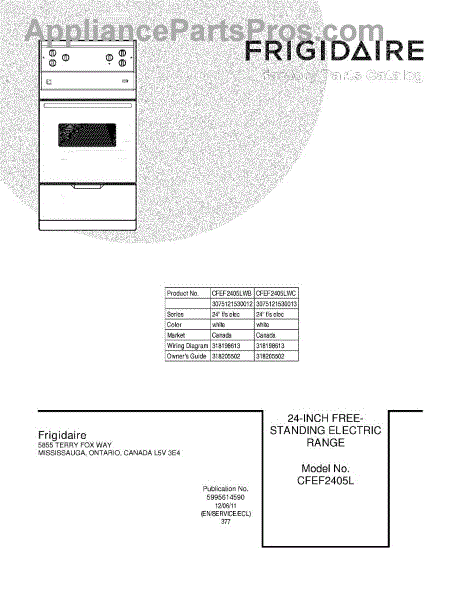 Parts for Frigidaire CFEF2405LWC: 01 - Cover Parts