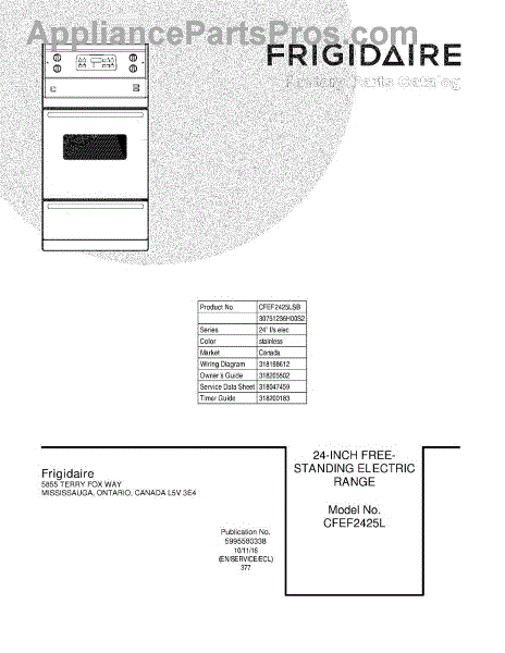 Parts for Frigidaire CFEF2425LSB: 01 - Cover Parts