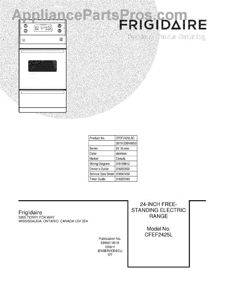 Parts for Frigidaire CFEF2425LSC: 01 - Cover Parts