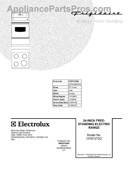 Parts for Frigidaire CFEF272DS6: 01 - Cover Parts