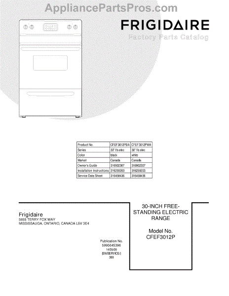 Parts for Frigidaire CFEF3012PBA: 01 - Cover Parts