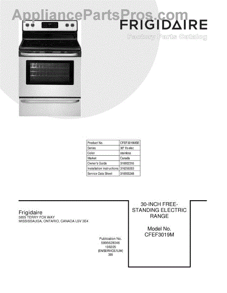 Parts for Frigidaire CFEF3019MSE: 01 - Cover Parts