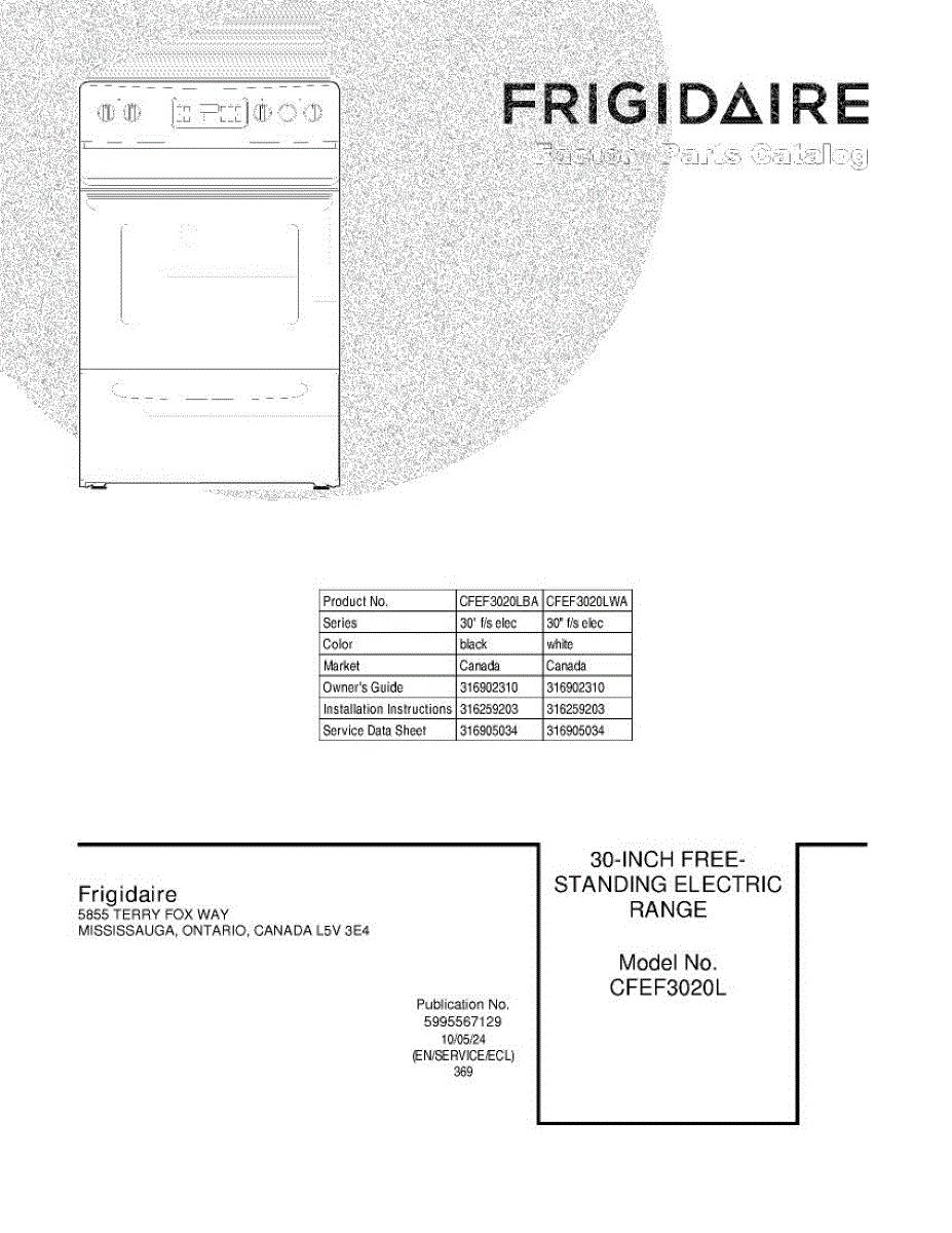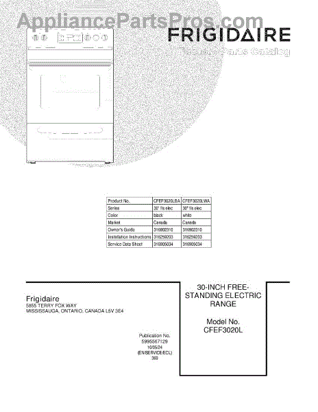 Parts for Frigidaire CFEF3020LBA: 01 - Cover Parts