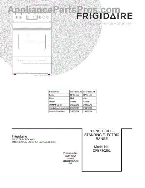 Parts for Frigidaire CFEF3020LBE: 01 - Cover Parts