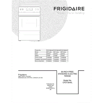 Parts for Frigidaire CFEF3046LSA: 01 - Cover Parts