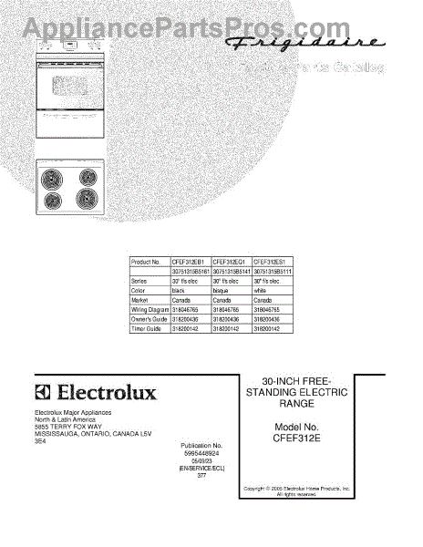 Parts for Frigidaire CFEF312EB1: 01 - Cover Parts