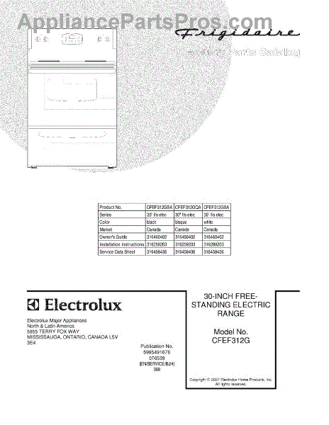 Parts for Frigidaire CFEF312GSA: 01 - Cover Parts