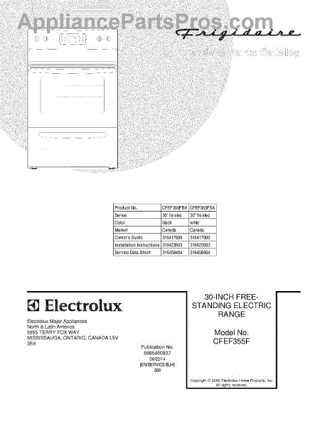 Parts for Frigidaire CFEF355FSA: 01 - Cover Parts