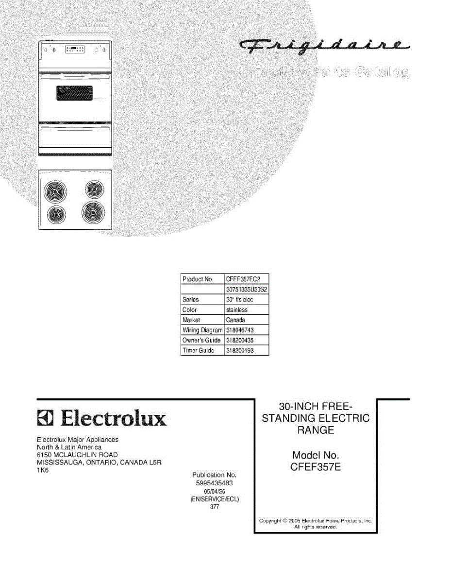 Parts for Frigidaire CFEF357EC2: 01 - Cover Parts