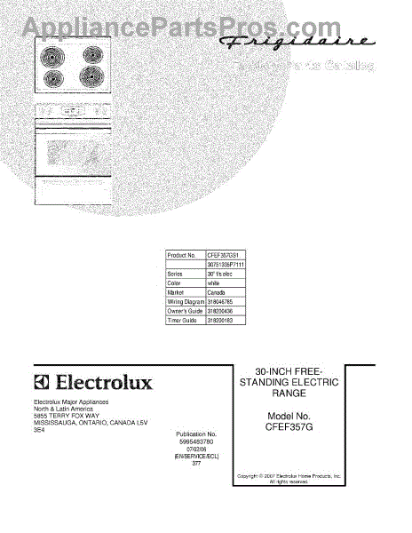 Parts for Frigidaire CFEF357GS1: 01 - Cover Parts