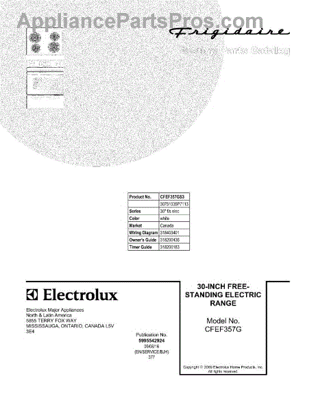 Parts for Frigidaire CFEF357GS3: 01 - Cover Parts