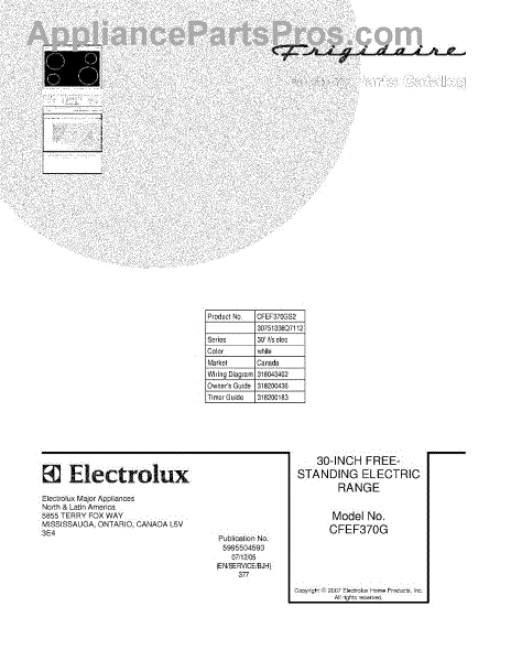 Parts for Frigidaire CFEF370GS2: 01 - Cover Parts