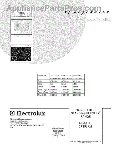 Parts for Frigidaire CFEF372EB4: 01 - Cover Parts