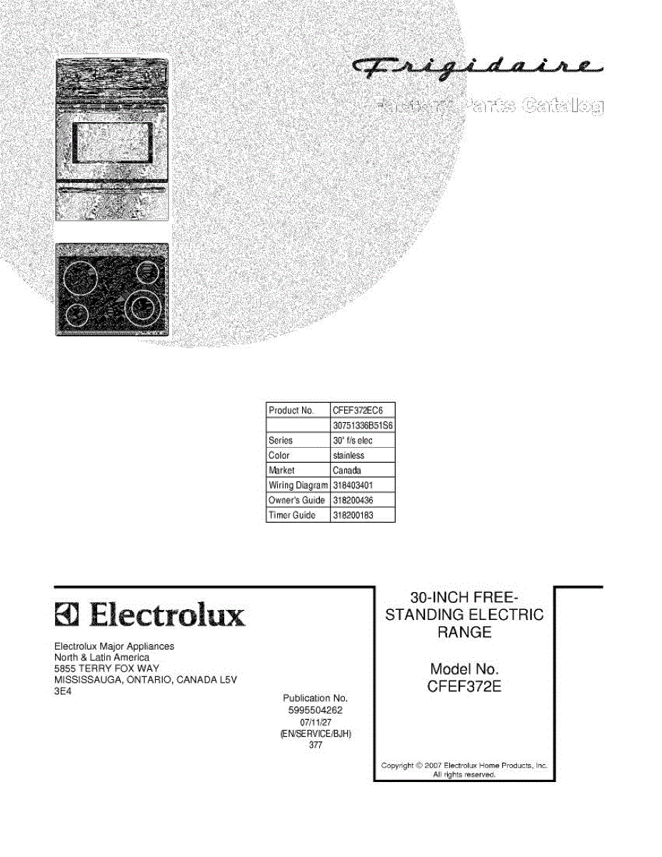 Parts for Frigidaire CFEF372EC6: 01 - Cover Parts