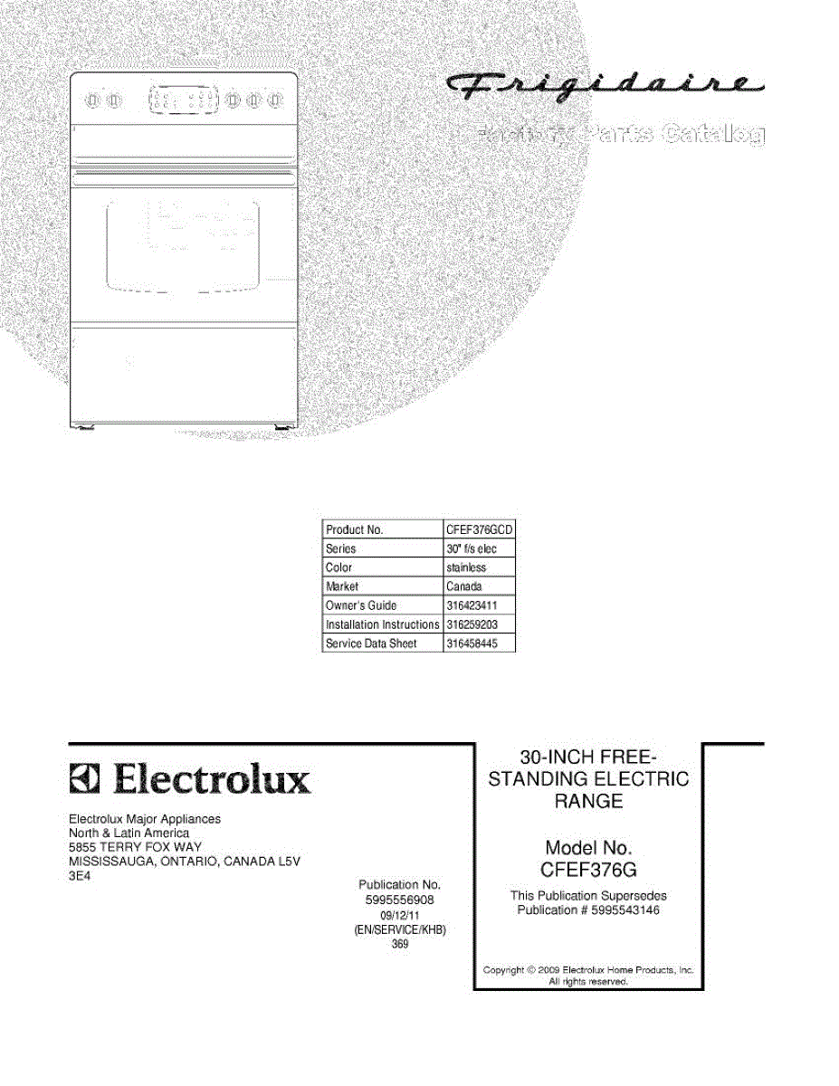 Parts for Frigidaire CFEF376GCD: 01 - Cover Parts