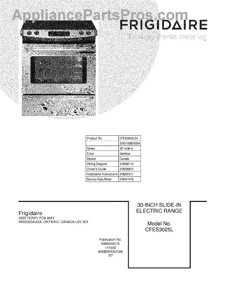 Parts for Frigidaire CFES3025LS4: 01 - Cover Parts