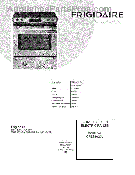 Parts for Frigidaire CFES3035LS1: 01 - Cover Parts